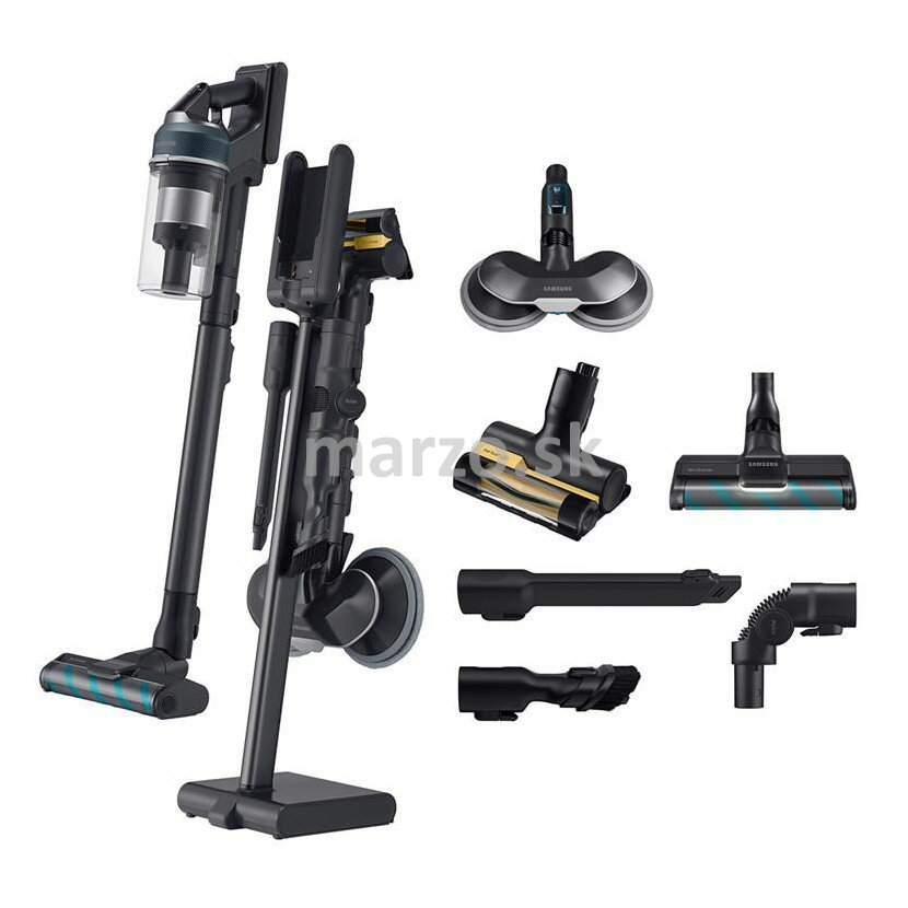 Tyčový vysávač Samsung Jet 95 premium, max. príkon 580 W, doba prevádzky 60 min., hlučnosť 86 dBA, objem nádoby na prach 0,8l, Stanica Z, čierna/modrá.